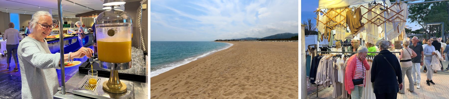 I Barcelona byder Annelise velkommen og fortæller forskelligt praktisk, mens vi kører, uden at der er snak hele vejen. Informationen om, at der er cava til morgenmaden, skaber en vis interesse, men beskeden om, at der er friskpresset appelsinjuice, resulterer i endnu større glæde. Det er en sund gruppe.